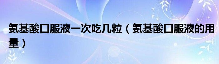 大家好,小容来为大家解答以上氨基酸口服液一次吃几粒,氨基酸口服液的用量的问题,小编也是到网上收集了一些与氨基酸口服液一次吃几粒,氨基酸口服液的用量相关的信息,那么下面分享给大家一起了解下吧。