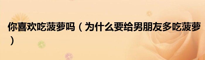 大家好,小容来为大家解答以上你喜欢吃菠萝吗,为什么要给男朋友多吃菠萝的问题,小编也是到网上收集了一些与你喜欢吃菠萝吗,为什么要给男朋友多吃菠萝相关的信息,那么下面分享给大家一起了解下吧。