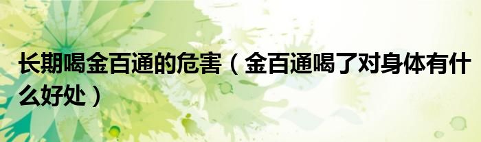大家好,小容来为大家解答以上长期喝金百通的危害,金百通喝了对身体有什么好处的问题,小编也是到网上收集了一些与长期喝金百通的危害,金百通喝了对身体有什么好处相关的信息,那么下面分享给大家一起了解下吧。