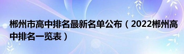 大家好,小初来为大家解答以上2022郴州高中排名一览表的问题,小初也是到网上收集了一些相关的信息,那么下面分享给大家一起了解下吧。